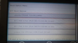 Modelo honetan USBtik abiatzeko F2 sakatu > Boot Manager (abioaren kudeaketa) eta bertan EFI Boot Devices zerrendan erabiltzen ari garen USBaren markan klik egin dut.